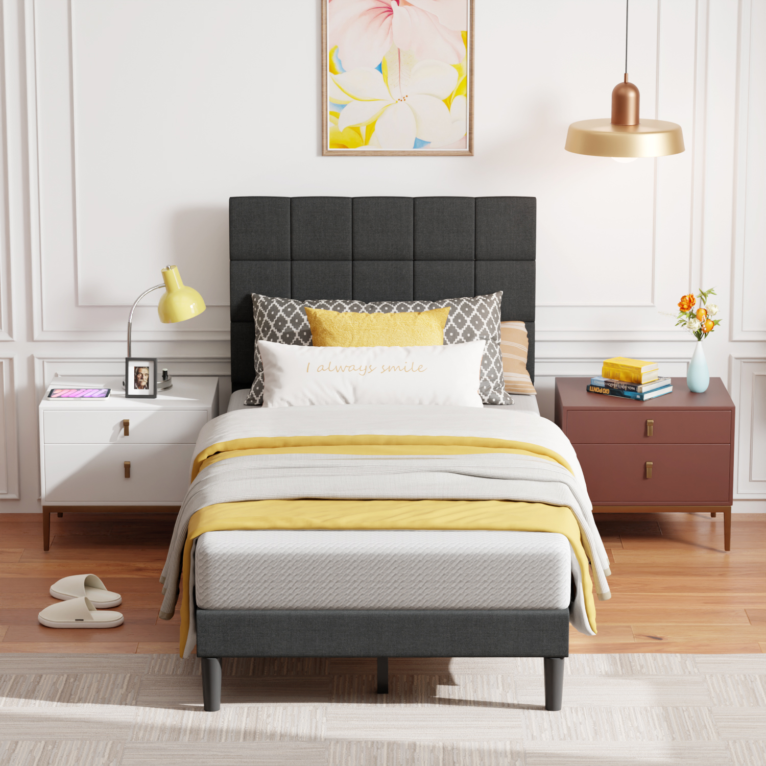 FDW Twin Bed Frame Upholstered Bed Frame with Fabric Upholstered Headboard,Wooden Slats Support Platform Bed Frame