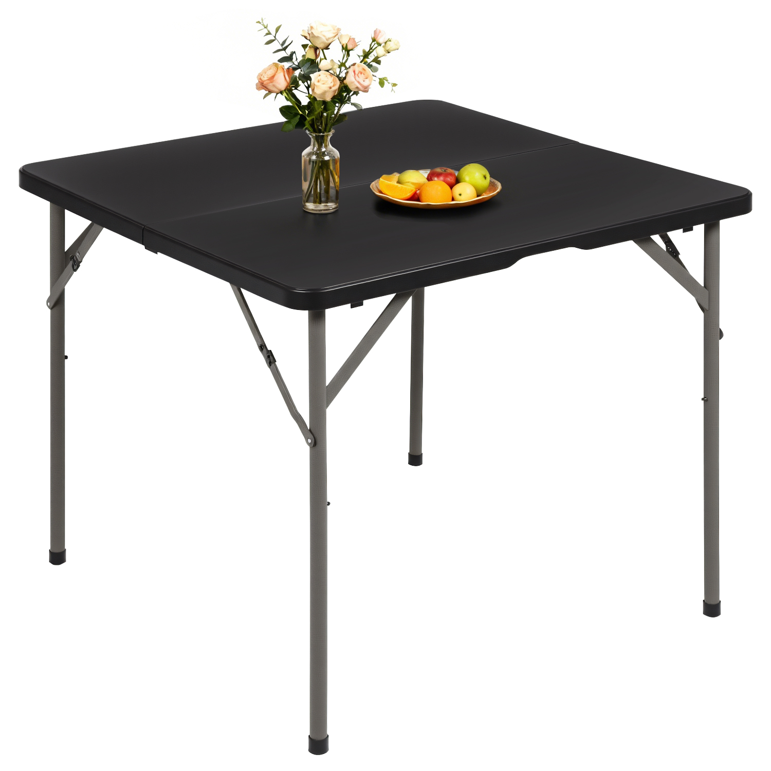 34" Folding Card Table Plastic Table Portable Square Height Dining Table Perfect for Party and Parties Backyard Events, Black